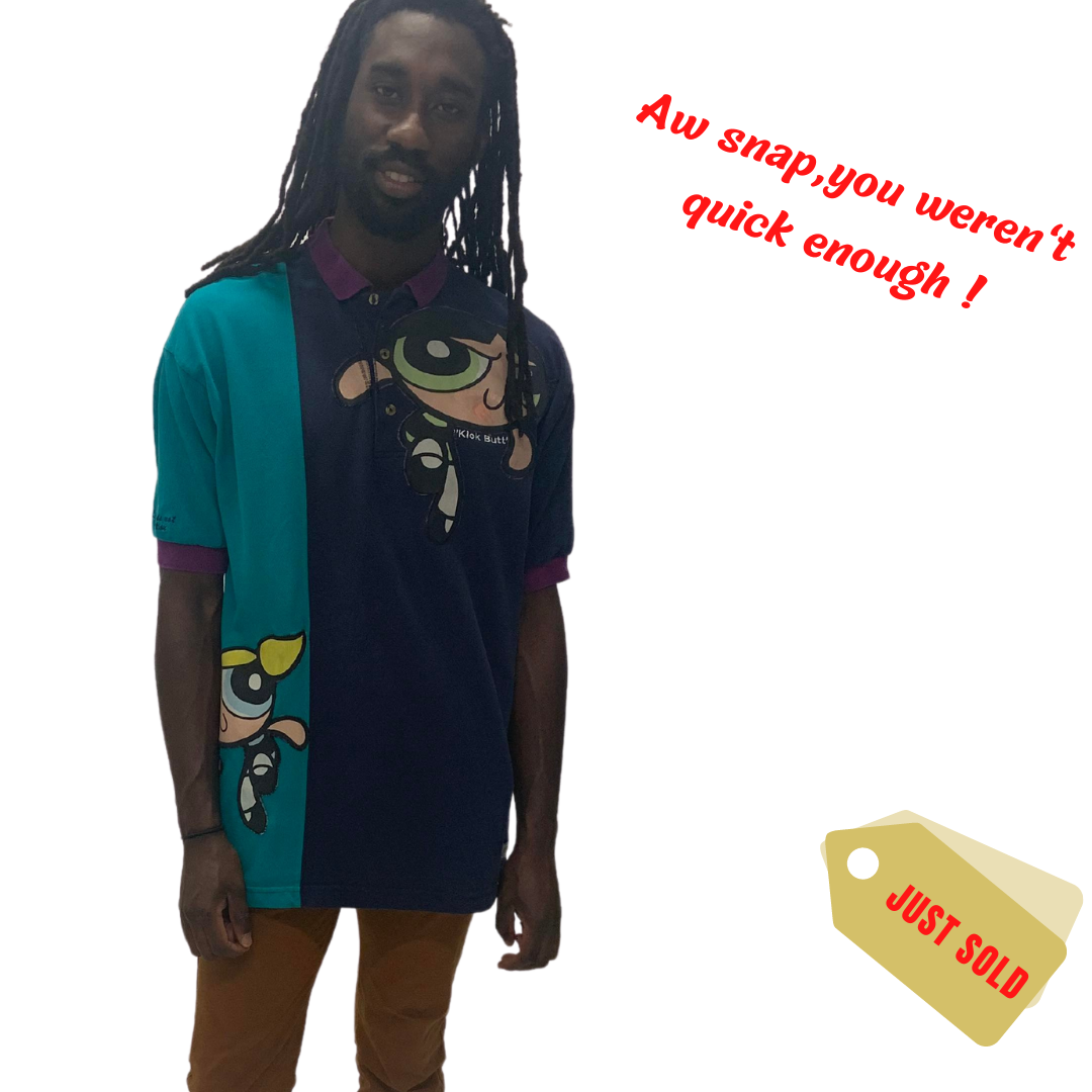 Vintage blue green and purple Colour blocked polo.This previously loved hydro one work uniform has been given new life - "kick butt" with Bubbles and Blossom.