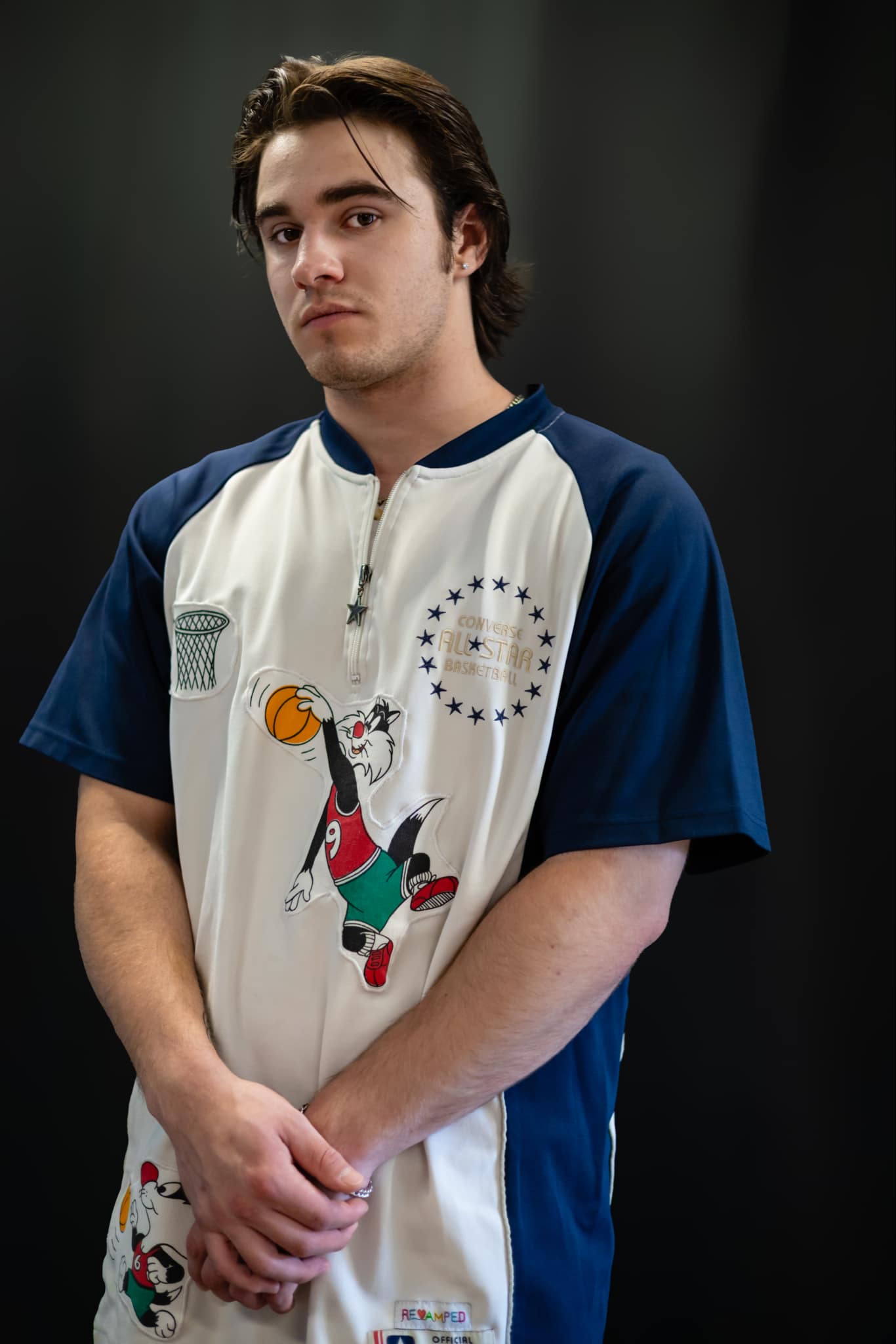Slam dunk into the 90s nostalgia with our Retro Converse T-Shirt - now with a twist that's more "looney" than ever! This ain't your average tee; it's a blast from the past with a zippered neck featuring the iconic all star pull tab zipper at the neckline.