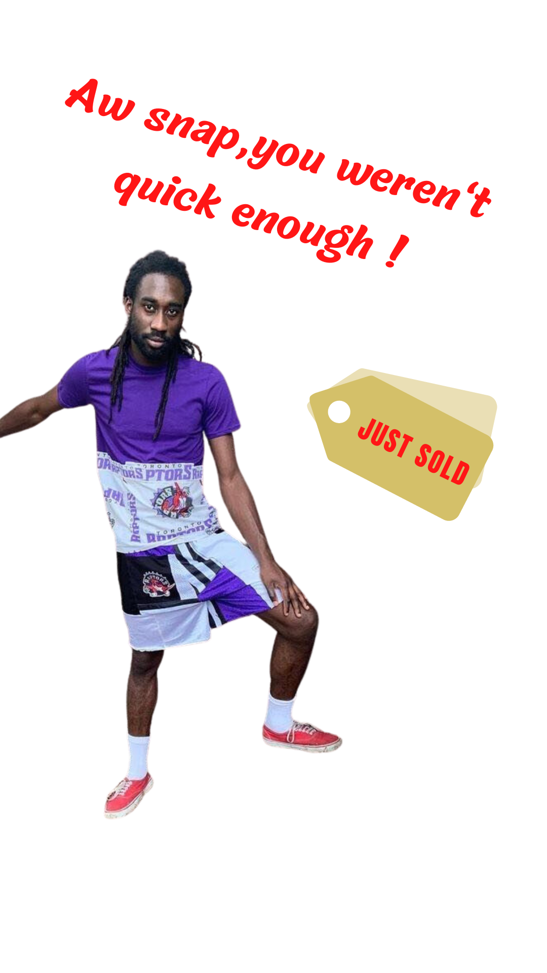 Made by combining a previously loved Raptors purple tee with vintage Raptors fabric.