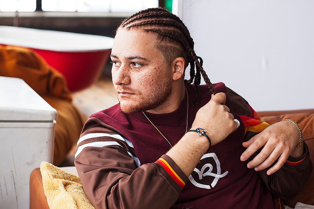Roc-A-Fella Roc-a-sweater made by havesting the sleeves, logo and trim of a brown "Roccawear" Jacket and combining them with a maroon hoodie.