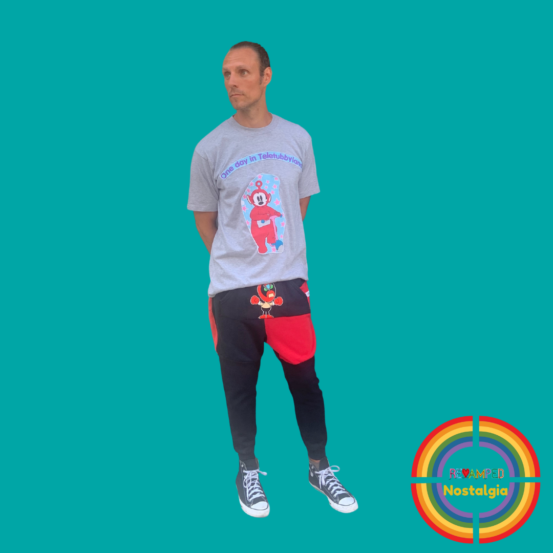 Made from a previously loved "strong bad" hoodie , with some red accented scraps from other projects. Features a kangaroo pocket on the front.