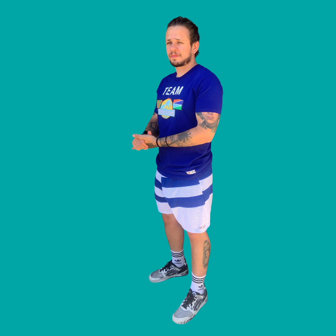 Bright blue deadstock t-shirt Featuring handmade patches made from